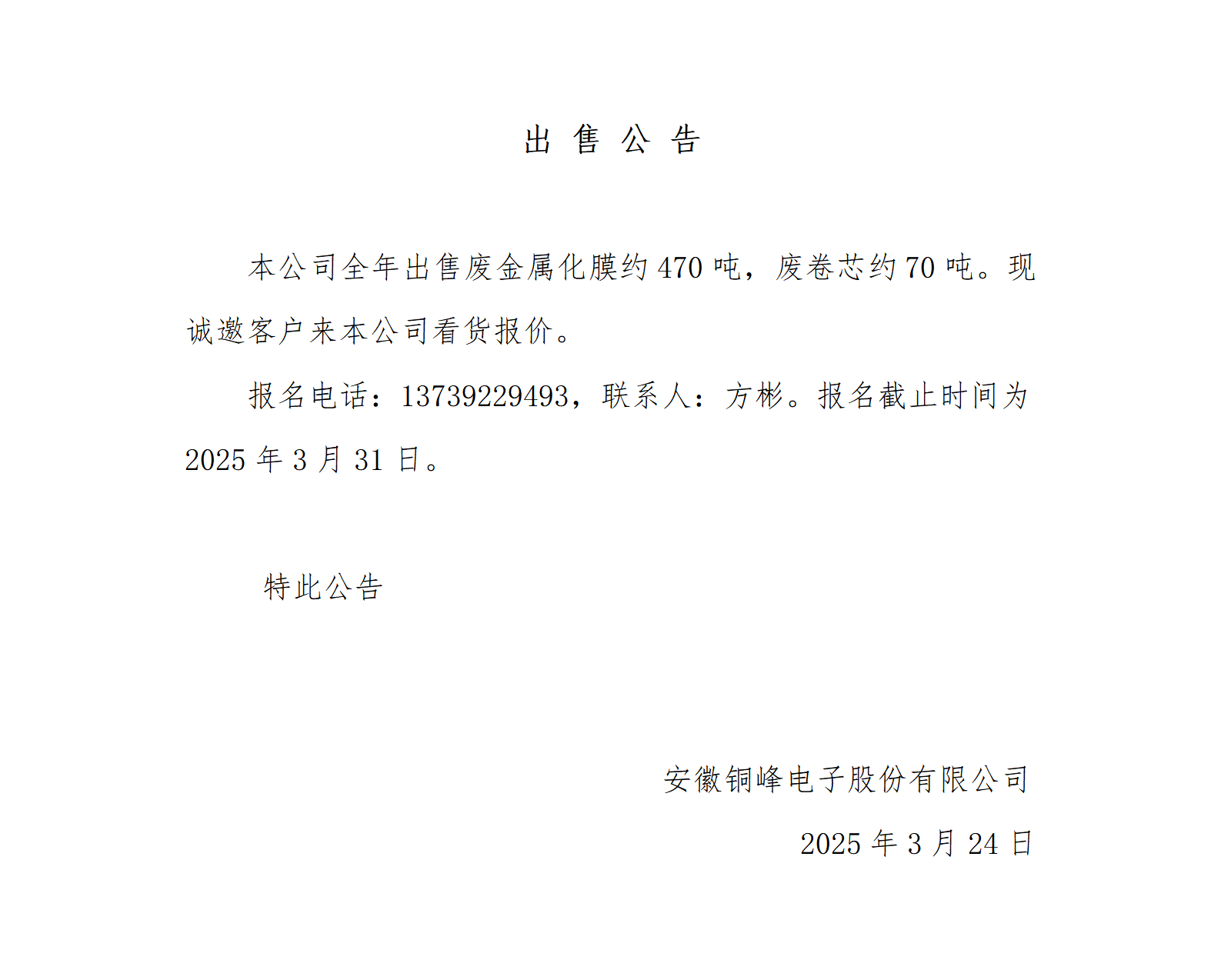 廢金屬化膜、廢卷芯出售公告_01
