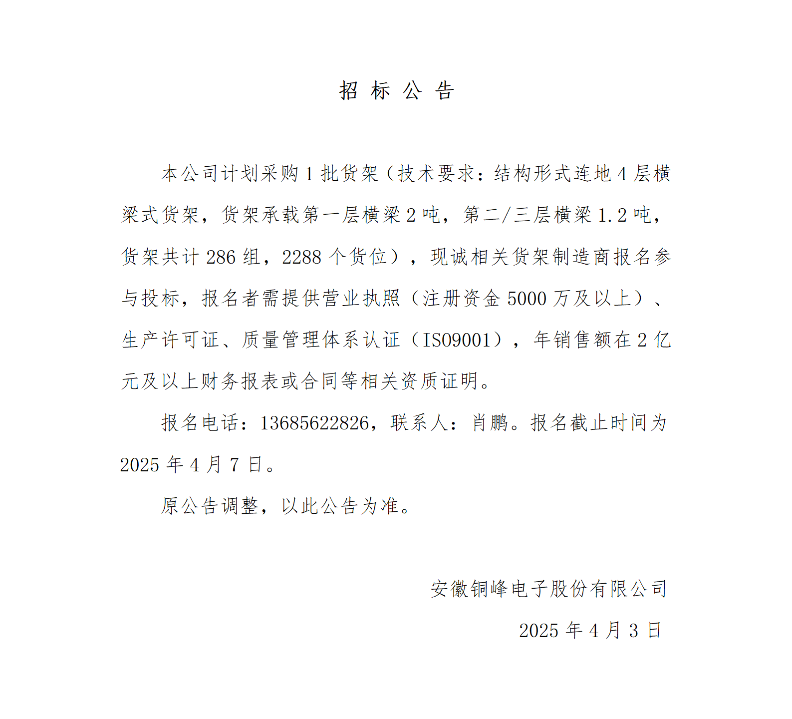 銅峰公司智能倉儲立體倉庫貨架采購招標公告_01