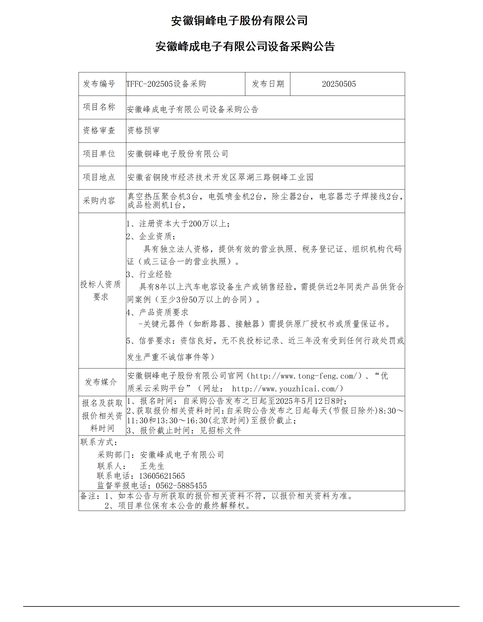 安徽峰成電子有限公司設(shè)備采購公告(1)_01