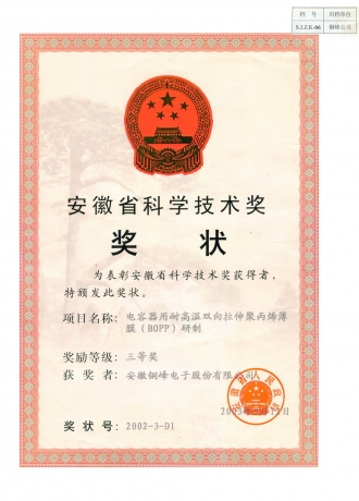 安徽省科學(xué)技術(shù)三等獎(jiǎng)