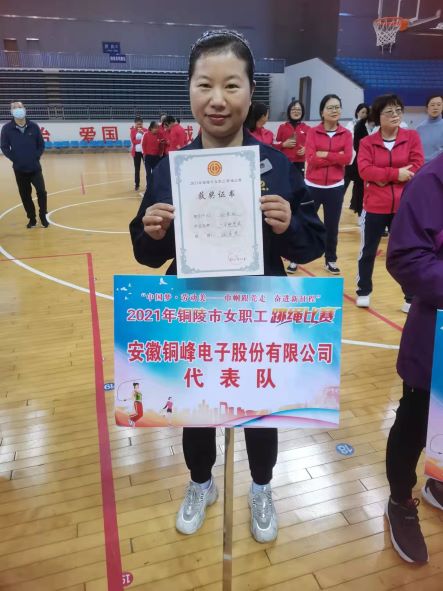 全市女職工跳繩比賽由市總工會(huì)主辦,共有全市工會(huì)系統(tǒng)35個(gè)單位組隊(duì)參賽,222名女職工、22支隊(duì)伍分別報(bào)名參加單人項(xiàng)目和集體項(xiàng)目比賽。公司工會(huì)選派了2名優(yōu)秀女職工選手參加了單人項(xiàng)目。經(jīng)過參賽選手奮勇拼搏,最終電容器分公司孫艷紅以一分鐘單搖201個(gè)的好成績(jī)?cè)谌?22名參賽選手中排名第11名,榮獲“優(yōu)秀獎(jiǎng)”。
