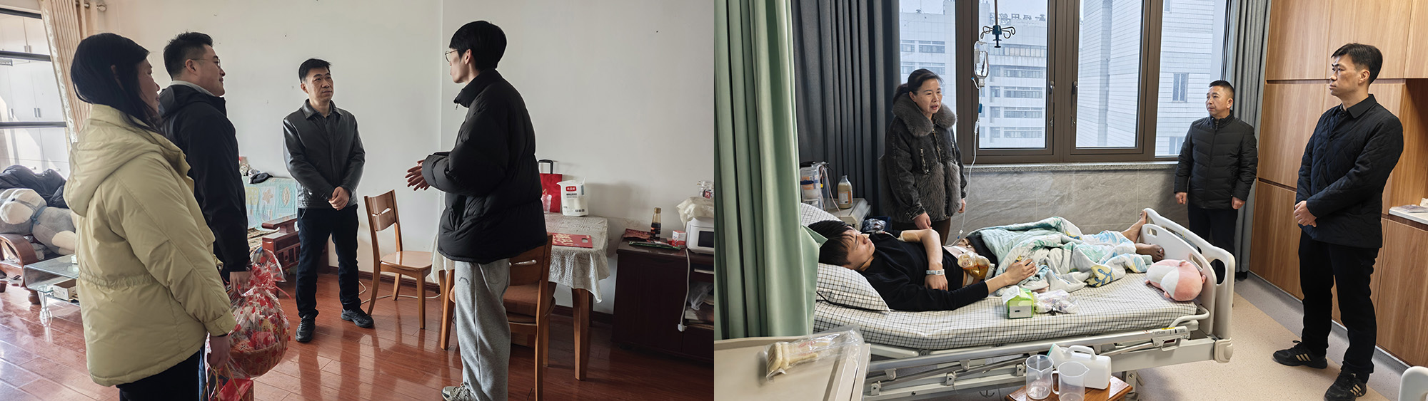 在醫(yī)院病房,公司領(lǐng)導(dǎo)還看望患病住院的困難職工,并送上慰問金。公司領(lǐng)導(dǎo)關(guān)切詢問患者的病情、治療進(jìn)展以及目前身體狀況,叮囑患者要安心養(yǎng)病,放寬心態(tài),積極配合治療,爭取早日康復(fù)。